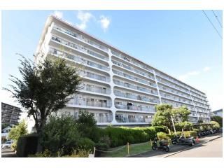 地上8階建てのホワイトの外壁に赤い屋根がアクセントです。
